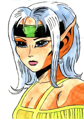 The same image from Siege at Blue Mountain after photocopying and colouring with colour ink.