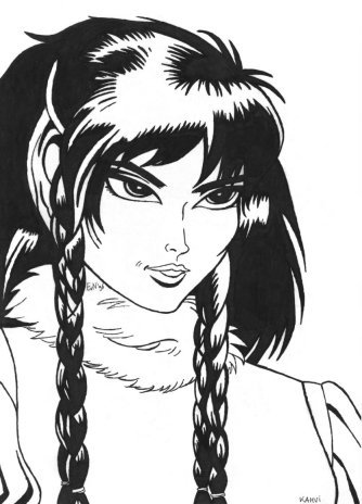 A drawing I made of Kahvi several years later, in 1996, copied after an image in Siege at Blue Mountain. Although it turned out pretty okay, I don't like it as much as my first.