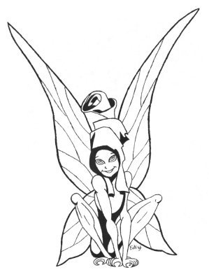 My drawing of Petalwing which I made in 1996, after an image in The Cry from Beyond. Petalwing had its eyes closed in the original picture, so I opened them.