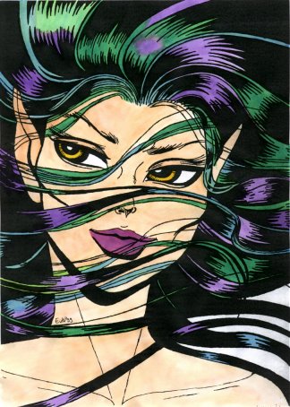 The same image from Kings of the Broken Wheel after photocopying and colouring with colour ink. I must say that after copying all these pictures, my admiration for Wendy (and anyone else who can just shake this sorta thing out of their sleeve) has quadrupled. Kudos to all you people who can do this without a reference, I've got a long way to go yet.